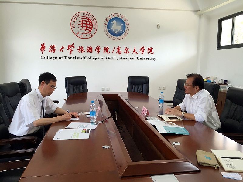 旅游学院院长黄远水教授会见了刘学明教授。黄远水代表旅游学院对刘教授的来访表示热烈欢迎。他向客人介绍了学院办学历史和办学现状,他表示学院高度重视与法国拉罗谢尔高等商学院开展旅游管理专业的国际交流合作,双方在本科教育、研究生教育、教师交流等方面具有广阔合作前景。他希望双方能以旅游管理专业“3+1”联合培养项目为突破,逐步扩展交流领域。刘学明教授简要介绍了法国拉罗谢尔高等商学院的办学情况,他表示,近年来学校正逐步加强与中国有关方面合作,愿与华侨大学旅游学院一道就共同推动中法旅游领域高等教育交流而共同努力。