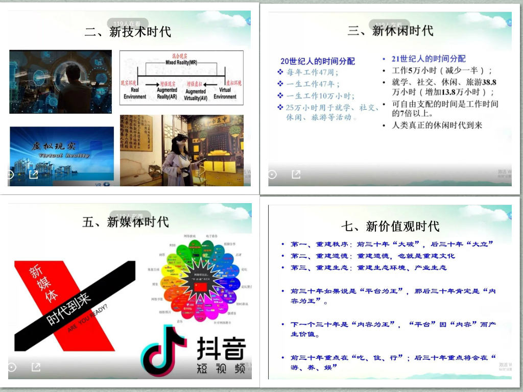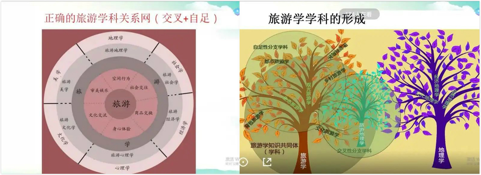 邹永广并结合疫情下旅游业发展的挑战与机遇,详细分析了旅游教育发展脉络、旅游学科的关系网以及宏微观发展趋势,他认为身处变革中的“新时代”,尤其是身处新技术时代、新休闲时代、新媒体时代、新价值观时代,更应树立起旅游“新思维”,认真思考“研究什么、为何研究、怎样研究”,他并就研究的一般过程与研究方法与同学们进行了分析解读。