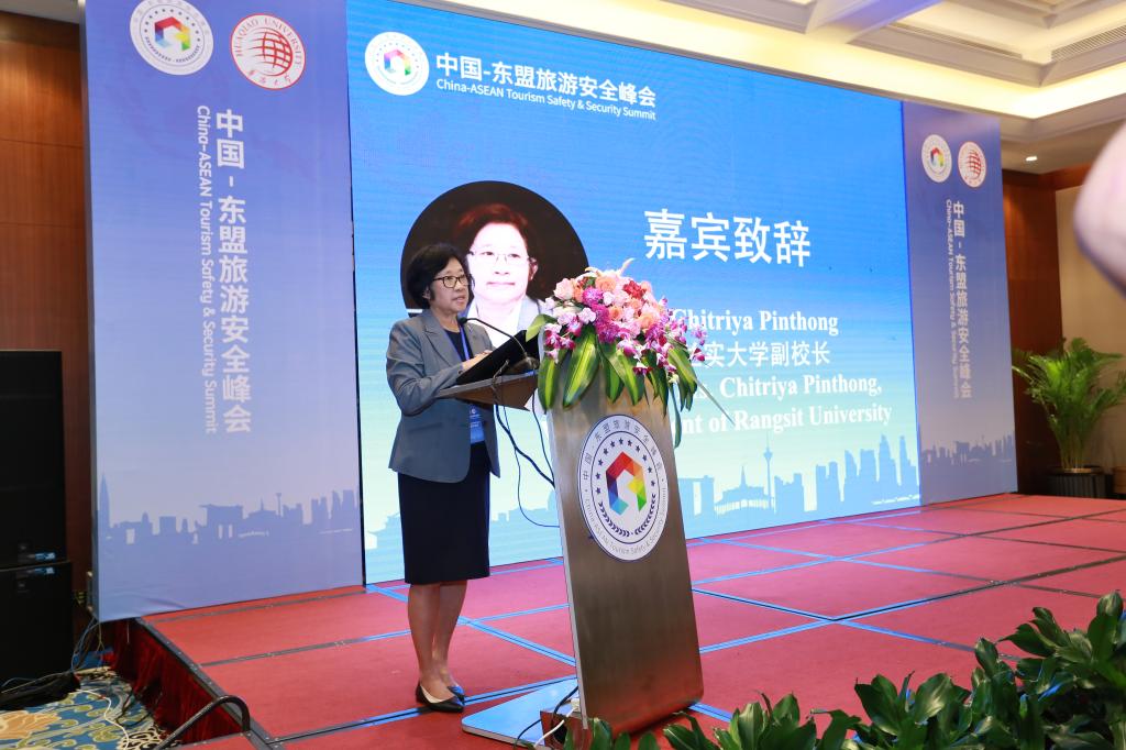 泰国兰实大学副校长ChitriyaPinthong博士在致辞中表达了对参加本次活动的深切感受,她指出,“旅游所带来的人文交流能很好地促进东盟各国友好往来,旅游管理和战略规划对东盟以及中国的旅游业具有重要意义。”同时,她也强调为了各国国家和人民的共同利益,研究“旅游安全”不容忽视,本次峰会,来自各个国家的专家聚集在此共议“旅游安全”事宜,探讨建立应急预案以及解决方案是十分必要的。