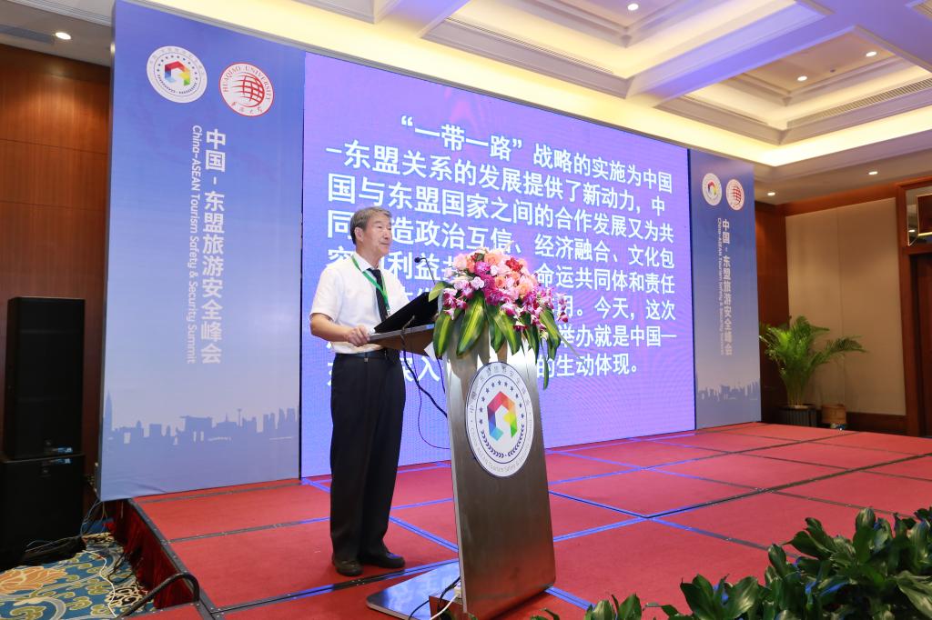 随后,国务院参事闪淳昌教授上台发表重要讲话,闪参事指出,“一带一路”倡议的实施为中国-东盟关系的发展提供了新动力,中国与东盟国家之间的合作发展又为共同打造政治互信、经济融合、文化包容的利益共同体、命运共同体和责任共同体发挥着积极作用。随着旅游人数的增加,近年来旅游安全事件、事故频频发生,特别是“一带一路”所经国家和地区,自然灾害、事故灾害等意外事件时有发生,使旅游的安全风险明显上升,必须高度重视和有效应对。闪参事强调,“此次旅游安全峰会的顺利举办就是中国—东盟深入合作发展的生动体现。”