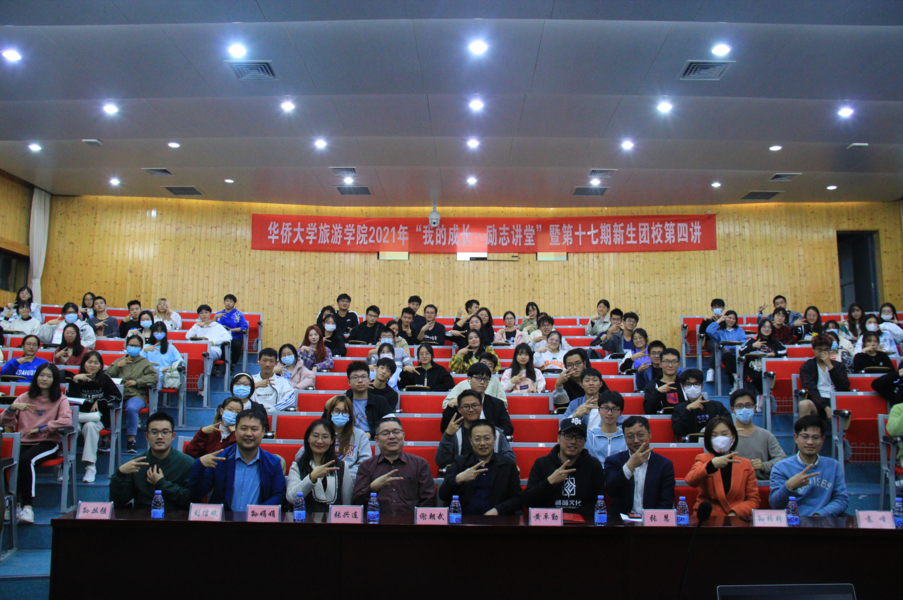 2021年11月26日,旅游学院2021年“我的成长·励志讲堂”暨十七期新生团校第四讲在庄为烜报告厅顺利举行。本次讲座邀请到旅游学院1998级旅游管理本科、厦门普普文化股份有限公司董事长兼总经理黄卓勤校友围绕《从爱好到事业》同2021级全体新生进行分享交流,旅游学院院长谢朝武老师、副院长张慧老师,华侨大学旅游学院厦门校友会监事长张兴连老师,刘信斌老师,旅游学院团委书记兼学工办主任孙娟娟老师、校友联络工作办公室主任孙盼盼老师及全体辅导员老师出席讲座。