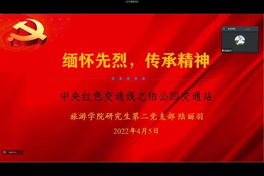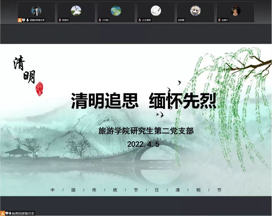 2022年4月5日,华侨大学旅游学院研究生第二党支部通过腾讯会议开展以“清明缅怀先烈,传承抗疫精神”为主题的党日活动。支部书记林荣策等25位党员同志出席本次主题活动,深切缅怀先烈,讲好先进事迹,传承优秀精神。